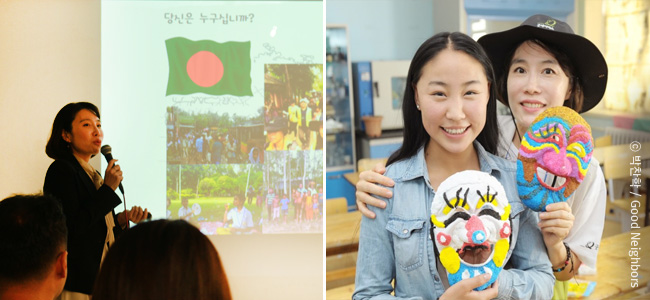 ‘2017 좋은 이웃 특별한 여행, 몽골’ 에서 직접 결연아동을 만나 홈스테이를 하며 하룻밤을 함께 보낸 남경민 좋은 이웃이 몽골에서의 특별한 경험을 나눠주셨어요.. 몽골 아동들을 대상으로 교육 프로그램을 진행하던 중에 깜짝 선물같이 우연하게 결연 아동을 만났던 이야기, 그리고 3번의 ‘좋은 이웃 특별한 여행’을 통해 느끼고 경험하며 만들어진 특별한 공식 “(만나다+하다)*보다=되다” 이 공식은 현장에서 직접 아동들과 직접 ‘만나서’ 함께 ‘하고’, 같은 곳을 ‘보니’ 우리가 생각하지 못했던 것들이 모두 ‘되었다’라는 직접 경험을 통해 알게된 특별한 이야기를 소개하셨어요:) 나와 같은 마음으로 후원하고 있는 또다른 좋은 이웃의 목소리를 통해 알게 된 몽골 소식은 깊은 공감을 이끌어 나눔의 의미를 되새겨보는 시간이 되었습니다.