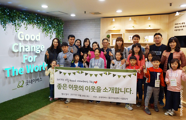 선선한 10월의 가을 어느날, 좋은 이웃들이 굿네이버스에 모였습니다. 서울동작지부, 대전서부지부, 대구서부지부. 전국에서 모여 좋은 이웃들의 따뜻한 마음을 나누었습니다. 추워지는 가을 저녁 따뜻함으로 가득채운 굿멤버스데이 이야기를 지금 시작합니다.