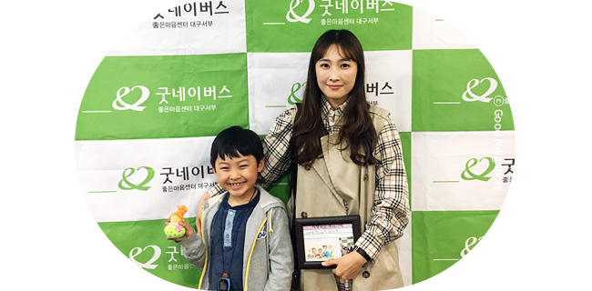 아이에게 가족 같은 친구를 만들어 주기 위해 결연을 시작하게 되었어요. 굿네이버스가 어떻게 사업을 진행하는지 아이에게도 알려주고 싶어 참여하게 되었습니다. 사실 큰 기대를 하지 않고 참여했는데 어떤 행사보다 더 의미 있고 좋았어요. 특히 아프리카 아동이 되어 물 길러 오기 체험은 아이들에게 두고두고 우리의 나눔이 해외 아동들에게 소중한 물을 전해줄 수 있다는 것을 이야기 해 줄 수 있을 것 같습니다. 나눔은 거창한 것이 아니라 가족처럼 생각하는 것같아요. 너무 좋았던 굿멤버스데이는 다음에도 꼭 참석하고 싶습니다^^