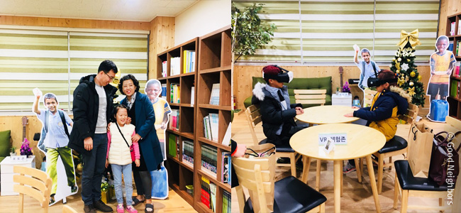 “굿네이버스에 오신 걸 환영합니다.! 지금부터 가족과 함께 해외 친구를 만나러 가볼까요!” 센터를 찾은 가족 회원들은 ‘해외 친구와 폴라로이드 사진 찍기’와 ‘VR로 해외 친구 만나보기!’ 활동으로 굿멤버스데이를 시작하였습니다. 가족과 함께하는 다양한 해외 친구 만나보기 활동을 통해 같은 또래의 전세계에서 소외된 이웃의 모습을 되돌아보는 계기가 되었습니다. 세계시민으로으로서 성장하는 우리 아이들에게 나눔의 의미를 느끼게 하는 따뜻한 시간이었습니다.