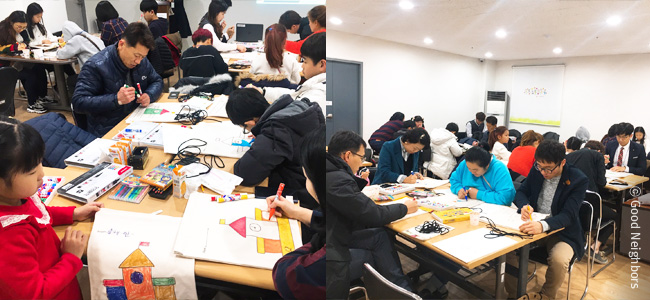 좋은 이웃 가족이 다 같이 모인 이 자리를 더욱 풍성하게 만든 희망가방 만들기! 더 좋은 이웃의 더 좋은 마음을 희망가방에 표현해보았습니다. 예쁘게 만들어진 희망가방은 굿네이버스 해외지부에 전달되어 저개발국가 해외아동들의 교육 지원에 직접 지원이 된다고 하니 더욱 의미깊은 시간이네요. 굿네이버스가 이루어나가려는 ‘세상을 위한 좋은 변화’에는 역시 좋은 이웃의 좋은 마음이 더해질 때 완성되는 것 같습니다.