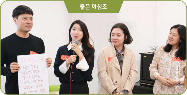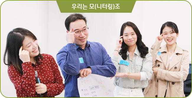 머리를 맞대고 진지하게 고민하는 시간, 바로 조 이름과 조별 역할을 정하는 시간인데요. 굿모닝 활동을 열심히 하겠다는 의지를 담아 어떤 기발한 이름이 나왔을지 궁금하시죠? 재치 넘치는 굿모닝 10기를 조별로 소개합니다!