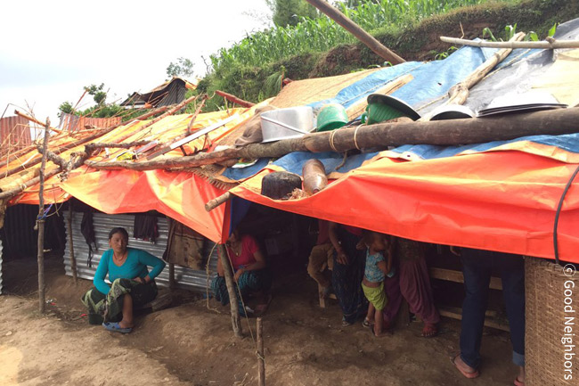 지금은 무너진 집 근처에 천막을 치고 생활하고 있습니다.