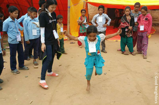 특히 지난 5월 8일에는 국내에서 심리정서사업을 진행한 노하우를 가지고 있는 직원들을 네팔 현지로 파견했습니다. 그들은 현재 고르카 지역에 있는 다섯 개의 마을에 약 2,000명의 아동과 교사, 주민들을 대상으로 PTSD 프로그램을 진행하고 있습니다. 아르아루방 마을에 2개의 아동친화공간(CFS ; Child Friendly Space)을 설치해 집단활동을 진행하고, 교사들에게는 추후에도 교실에서 프로그램을 활용할 수 있도록 교육합니다. 굿네이버스의 심리정서적 지원은 고르카 지역을 시작으로 상글라, 렐레, 버티켈 지역까지 확장될 계획이며, 아동과 주민들이 지진 피해로 받은 상처와 불안을 이겨내고 정서적 안정을 되찾을 수 있도록 지속적으로 도울 예정입니다.