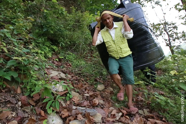▲ 지역의 식수지원을 위해 물탱크를 나르는 현지직원