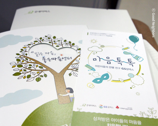 굿네이버스는 GS칼텍스와 함께 2013년부터 아동 심리치료 전문사업인 ‘어린이들의 한뼘친구 마음톡톡’을 계속 진행하고 있는데요. ‘마음톡톡’을 통해 3년간 약 3,900명의 저소득가정 아동 및 심리·정서적 어려움을 겪고 있는 아동들이 통합예술치료와 캠프 참여를 통해 마음의 힘을 키웠습니다. 아동을 넘어서 이제는 가족과 함께 마음의 힘을 키워나가고 있는데요. 아동과 가정의 건강한 변화를 위한 ‘마음톡톡’과 굿네이버스의 심리정서지원사업에 앞으로도 많은 관심 부탁드립니다.