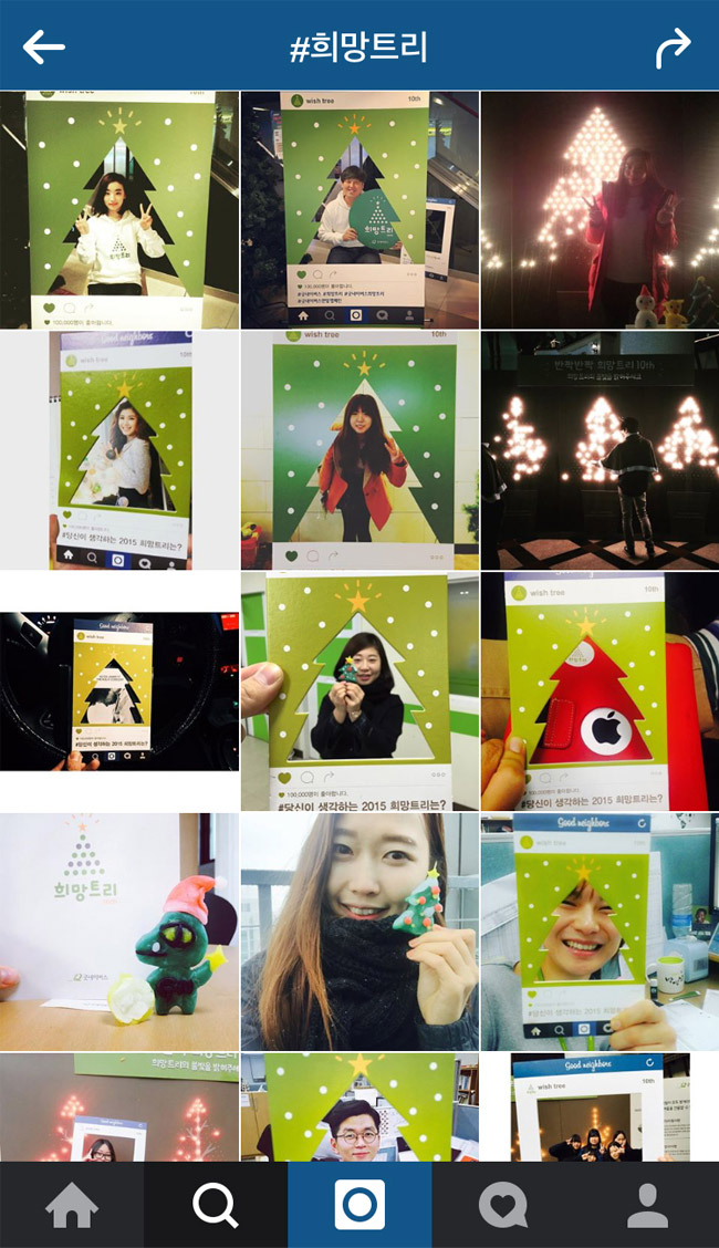 희망트리 키트를 구입했다면 인스타그램 이벤트에 참여해보세요. 키트에 들어있는 SNS 인증샷 틀을 이용해 올 한해 나에게 빛이 되는 희망트리 같은 사람이나 사물을 찍어주세요. 그리고 인스타그램에 해시태그 #굿네이버스 #굿네이버스희망트리 #희망트리 #굿네이버스연말캠페인 을 달아 나의 친구들에게 나눔의 소식을 전해주세요. 인스타그램에 희망트리 사진을 올려주신 분들 중 추첨을 통해 선물을 드립니다.