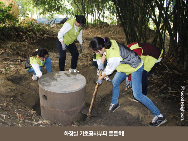 짧은 일정에 완공은 하지 못했지만 청소년 희망봉사단 학생들이 튼튼한 화장실 토대를 만들어준 덕분에, 이후 총 네 곳의 가정에 깨끗하고 안전한 화장실이 생길 수 있었답니다.