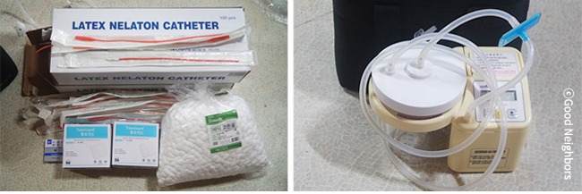 또 비슷한 상황에 공감하며 응원해주신 후원자 분들 덕분에 의료 물품도 지원할 수 있었습니다. 의료물품에는 석션기도 포함돼 있었는데요. 희재는 목에 걸리는 가래 때문에 목숨을 잃을 수도 있기에, 가래를 제거하는 석션기는 생명줄과도 같습니다. 석션기가 갑자기 망가질까 봐 늘 전전긍긍했던 희재의 어머니는 이제 한시름 놓을 수 있게 되었습니다.