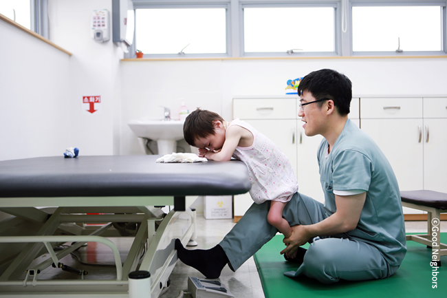 희재는 정밀검진을 받아 정확한 상태를 알 수 있게 되었고, 지금은 이에 맞는 체계적인 치료를 받고 있습니다. 항상 누워있기에 온몸에 근육이 부족해 현재 주 1~2회 정도 재활치료도 받고 있습니다. 뼈가 성장할 때에 근육이 조금이라도 따라갈 수 있도록 돕고 있는 것이죠.