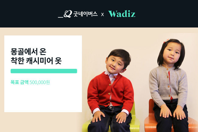 몽골의 겨울은 영하 30도가 일상입니다. 입김마저 순식간에 얼어버리는 그곳에서 따뜻함을 가득 품은 옷들이 도착했습니다. 바로 굿네이버스 몽골 지부의 사회적기업 <굿셰어링> 에서 출시한 아동용 캐시미어 가디건과 조끼인데요. 몽골 지역 주민들이 정성 들여 제작한 제품이랍니다.
