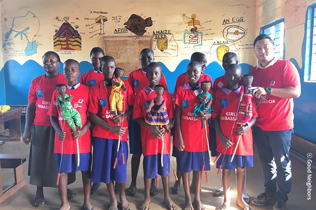 키마사 초등학교에서 처음으로 조직된 걸스 앰버서더는 '여자아이'이기 때문에 받는 사회적 차별 대해서 인식하고 이를 알릴 수 있는 다양한 '여성 인권 증진'을 위한 활동을 진행했습니다!! 또, 굿네이버스에서 교육받은 '여성 인권'에 대해 다른 학교에 가서 직접 전달 교육을 하기도 했고요!!
