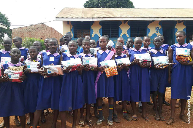 굿네이버스는 글로벌 소셜벤처 기업인 '제리 백'과 함께 위생적으로 재사용이 가능한 생리대를 제작하여 아이들에게 나누어주었습니다.